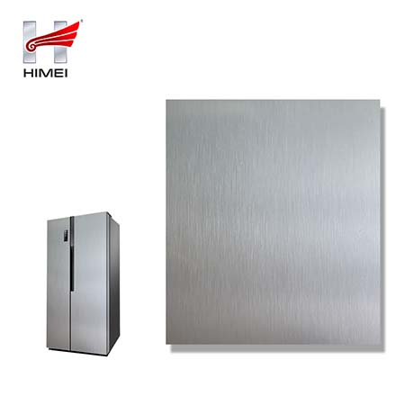 家電用覆膜鋼板,就是鋼板的基材上面覆了一層PET膜/PVC膜,然后通過覆合貼覆而成,主要應用在各類家電外殼裝飾上,例如冰箱、洗衣機、電飯煲等外殼部件。覆膜是一種物理工藝,一層膜一層鋼板經過高溫高壓壓合而成。